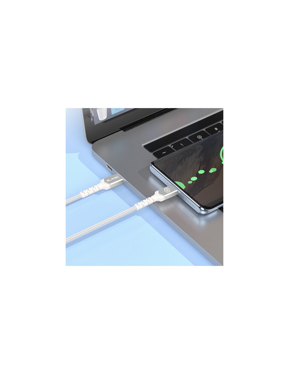 Blavec : Cable de datos trenzado (USB-C / USB-C 100W) - blanco-plata (blíster)
