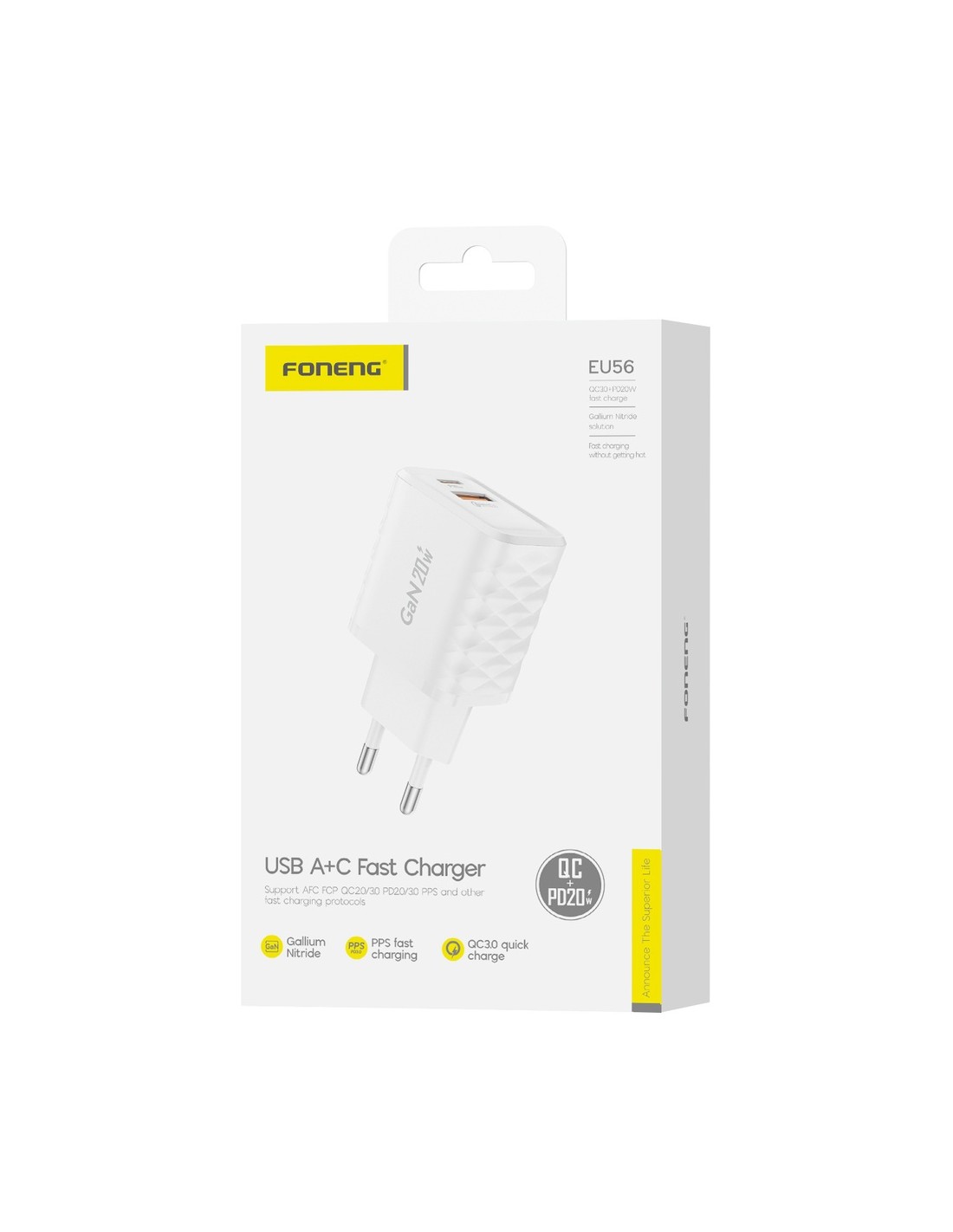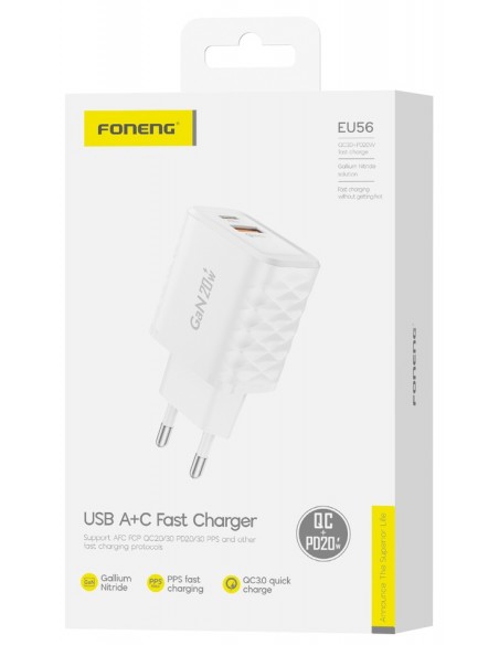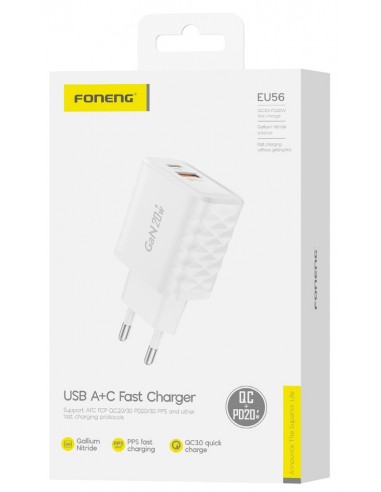 Foneng : Cargador de red EU56 20W (1 x USB-A / 1 x USB-C) - blanco (blíster)