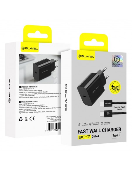 Blavec : Cargador de red 45W (USB-C / USB-C) - negro (blíster)