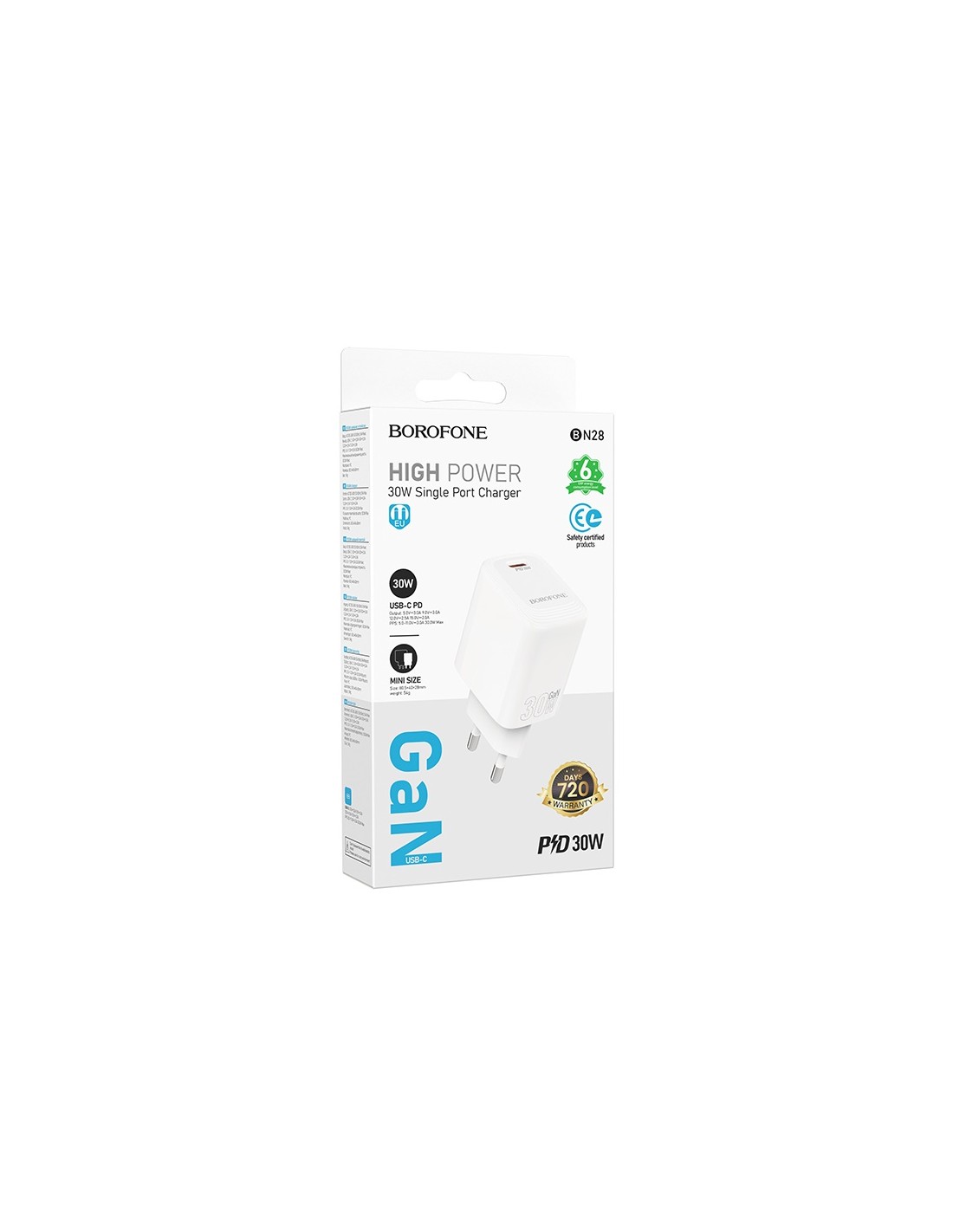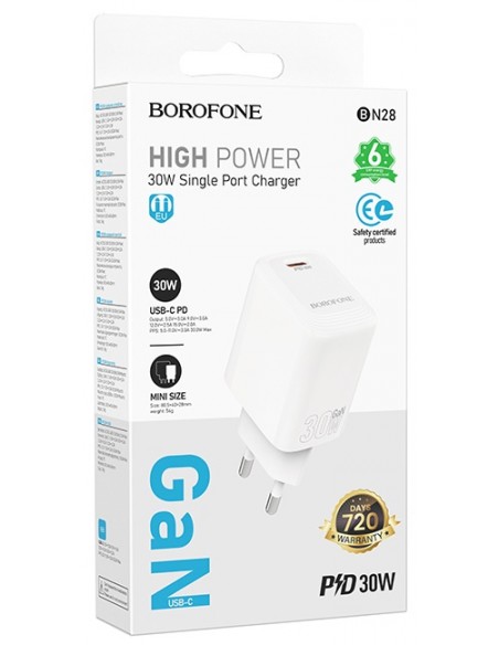 Borofone : Cargador de red BN28 30W (1 x USB-C) - blanco (blíster)