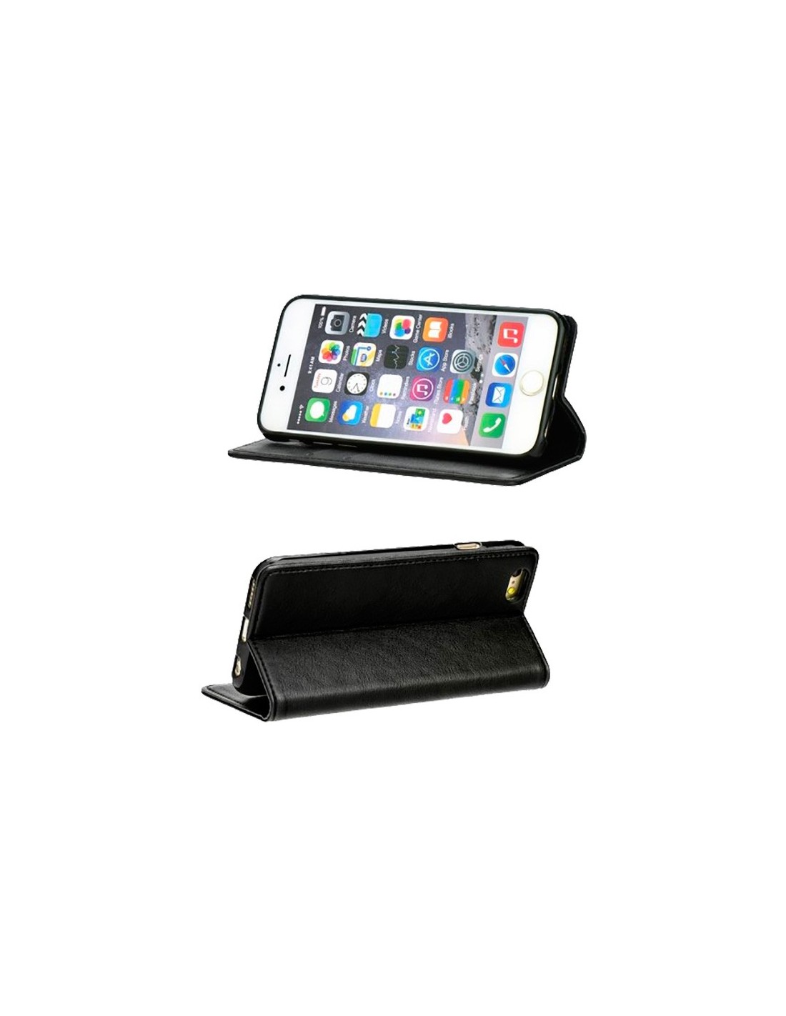 - Funda de piel tipo libro con cierre imantado invisible y stand horizontal (excepto en los modelos universales) para poder disfrutar de videos y presentaciones.