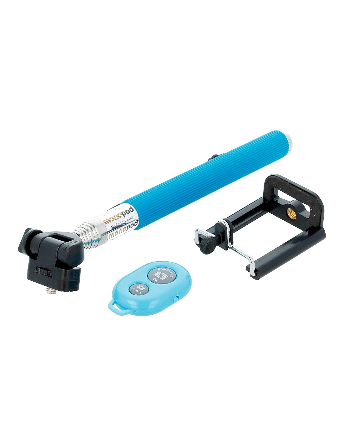 Soporte universal para selfies + Disparador bluetooth azul (20-97 cm)