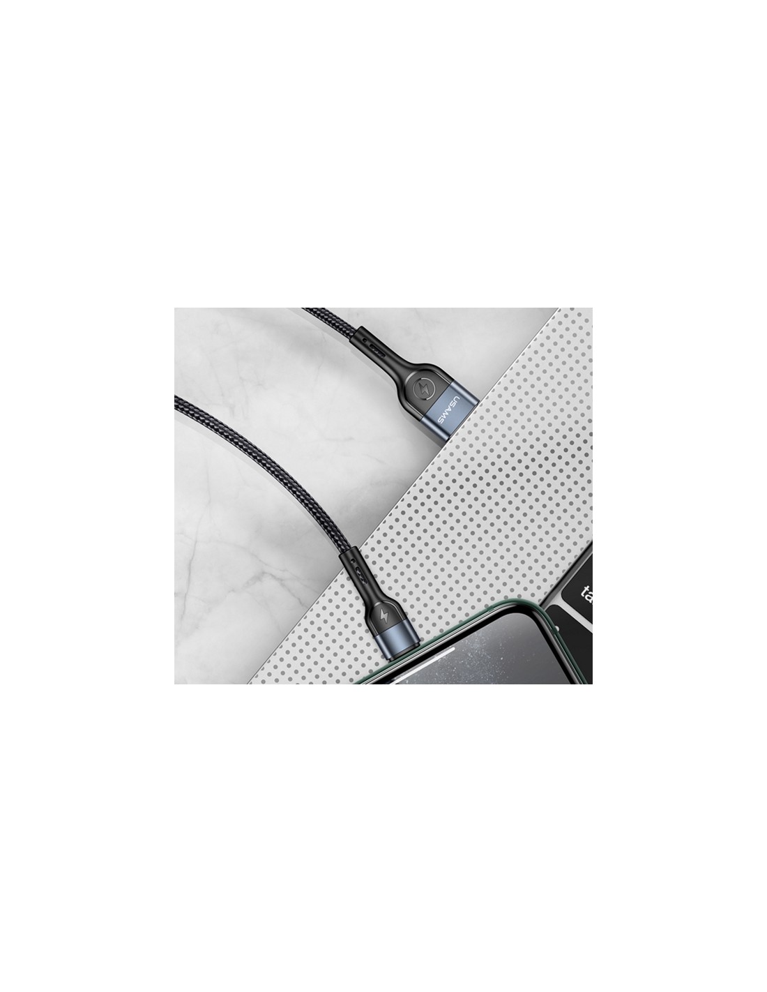 Usams : Cable de datos trenzado aluminio (Lightning) - negro (blíster)