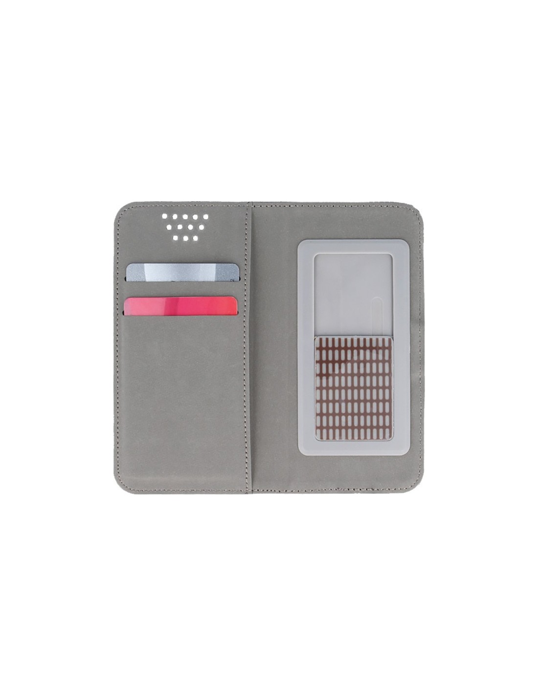 - Funda de piel tipo libro con cierre imantado invisible y stand horizontal (excepto en los modelos universales) para poder disfrutar de videos y presentaciones.