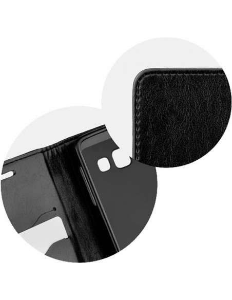 - Funda de piel tipo libro con cierre imantado invisible y stand horizontal (excepto en los modelos universales) para poder disfrutar de videos y presentaciones.