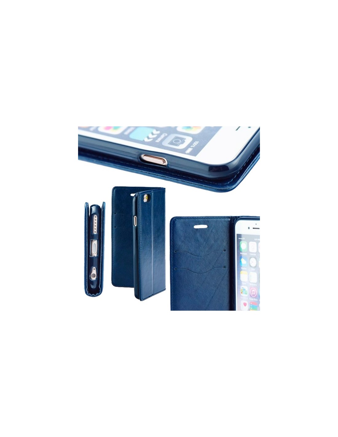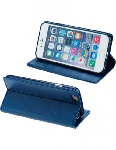 - Funda de piel tipo libro con cierre imantado invisible y stand horizontal (excepto en los modelos universales) para poder disfrutar de videos y presentaciones.