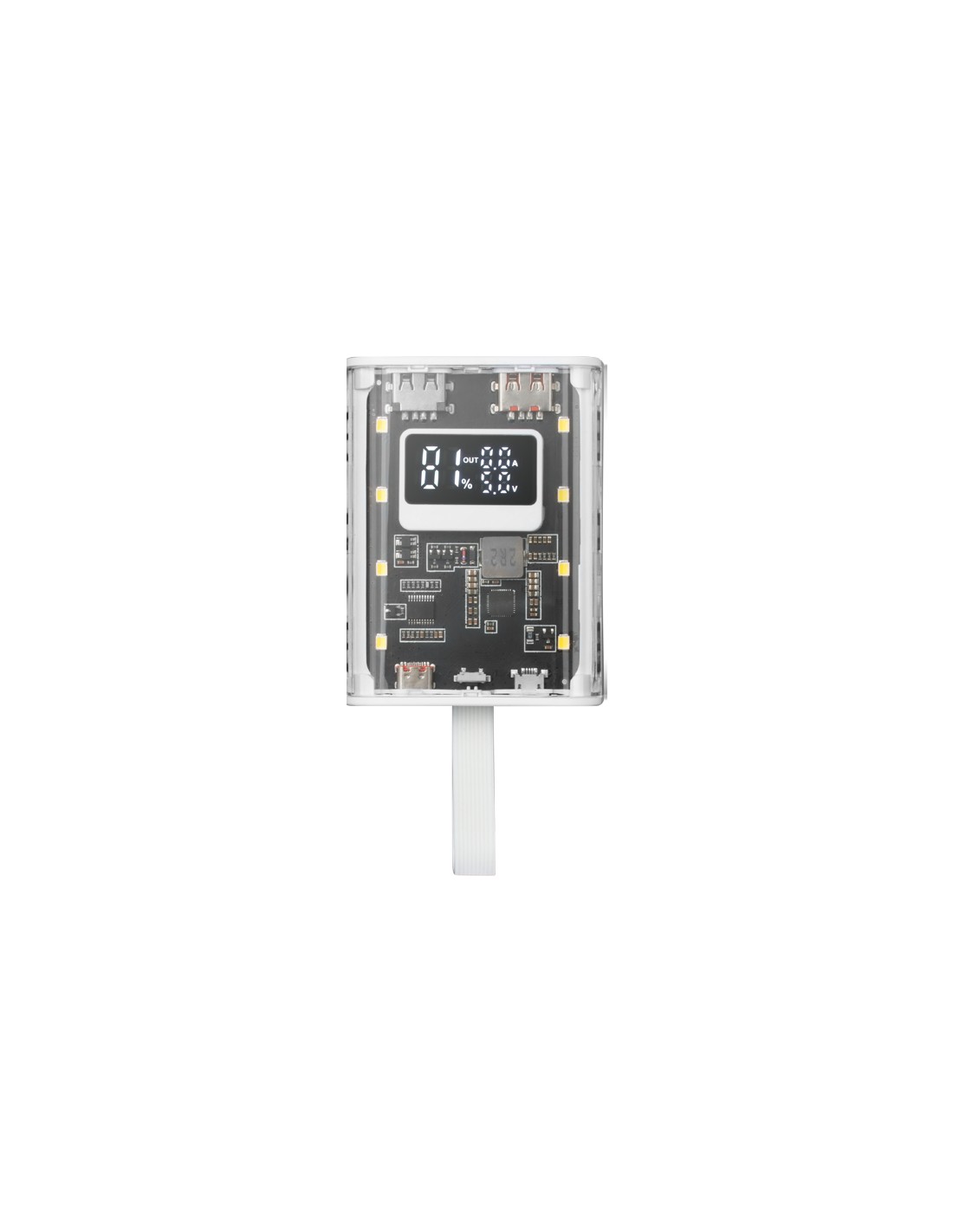 MPK-10K, Power Bank Compacta 22.5W, Carga Rápida QC3.0 & PD3.0 10000mAh, Monitorización Inteligente de Batería con Carga Múltiple, Cordón + Linterna LED, Conectividad Universal, Blanco